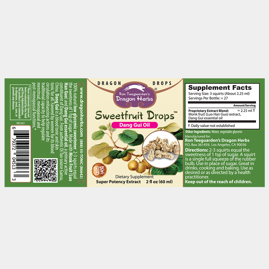 Sweetfruit Drops de Herbes de dragon est la teinture extraite standardisée du fruit à base de plantes chinoises Luo Han Guo (Siraitia grosvenorii). De plus, c’est l’une des délicieuses friandises de la nature. Sweetfruit Drops est un produit naturellement très sucré qui a très peu d’effet sur notre taux de sucre dans le sang.