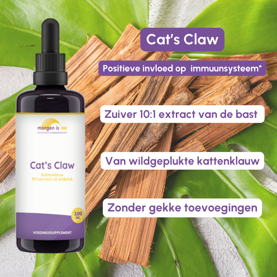 Kattenklauw heeft een werking op het immuunsysteem, door het te activeren en te versterken. Dit kan de werking van immunosuppressiva tegengaan. Raadpleeg je arts of apotheker. Niet geschikt voor kinderen onder de 3 jaar. Niet gebruiken tijdens de zwangerschap of het geven van borstvoeding.