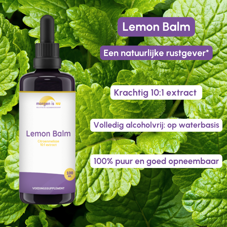 Lemon Balm (ook bekend als citroenmelisse) van Morgen is Nu bevat een krachtig extract van het biologisch geteelde blad van de Melissa officinalis-plant. Deze plant staat bekend als natuurlijke rustgever* en wordt veel gebruikt ter ondersteuning van een gezonde nachtrust en mentaal welzijn*. De geconcentreerde extractvorm in dit supplement maakt het mogelijk om de werking van citroenmelisse op een eenvoudige en effectieve manier te benutten. Een dosering bevat 180 mg extract (10:1) en komt overeen met 1800 mg gedroogd kruid.
